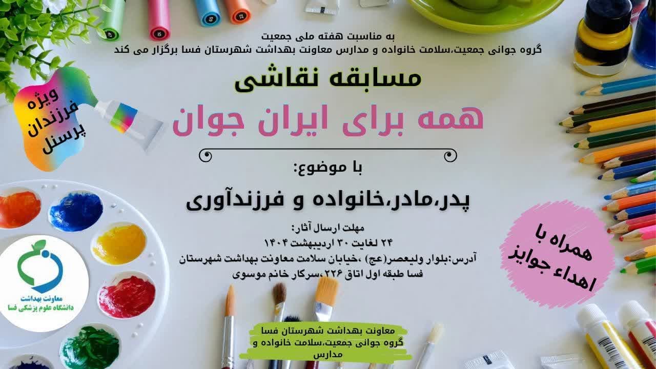 مسابقه نقاشی ویژه فرزندان پرسنل دانشگاه علوم پزشکی فسا و واحد‌های تابعه با موضوع پدر، مادر، خانواده و فرزندآوری